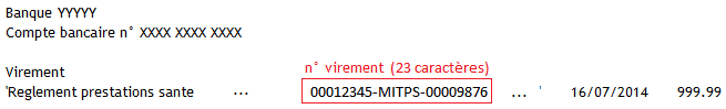 Le n° virement se trouve dans votre relevé de compte comme indiqué dans l'image suivante.